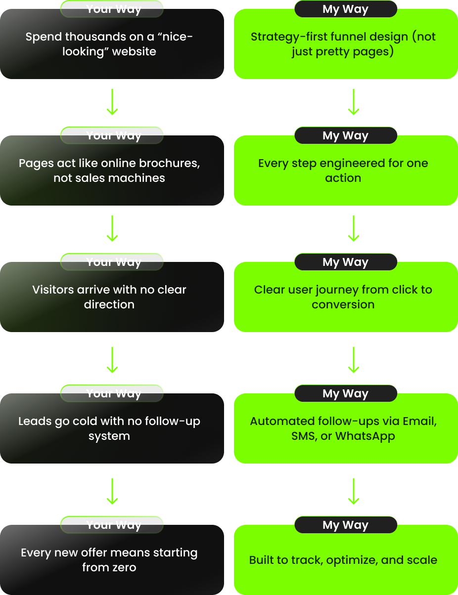 I stand by my work and offer a satisfaction guarantee. If you’re not happy with the final result, we can discuss revisions or next steps to ensure the funnel meets your expectations.