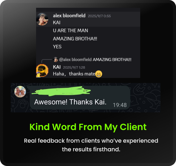 “Working with Kai was a great experience from start to finish. Even with a tight deadline, he delivered exactly what we needed—quickly, professionally, and without any friction. The website turned out exactly how we wanted, communication was effortless, and he was always open to making changes.”